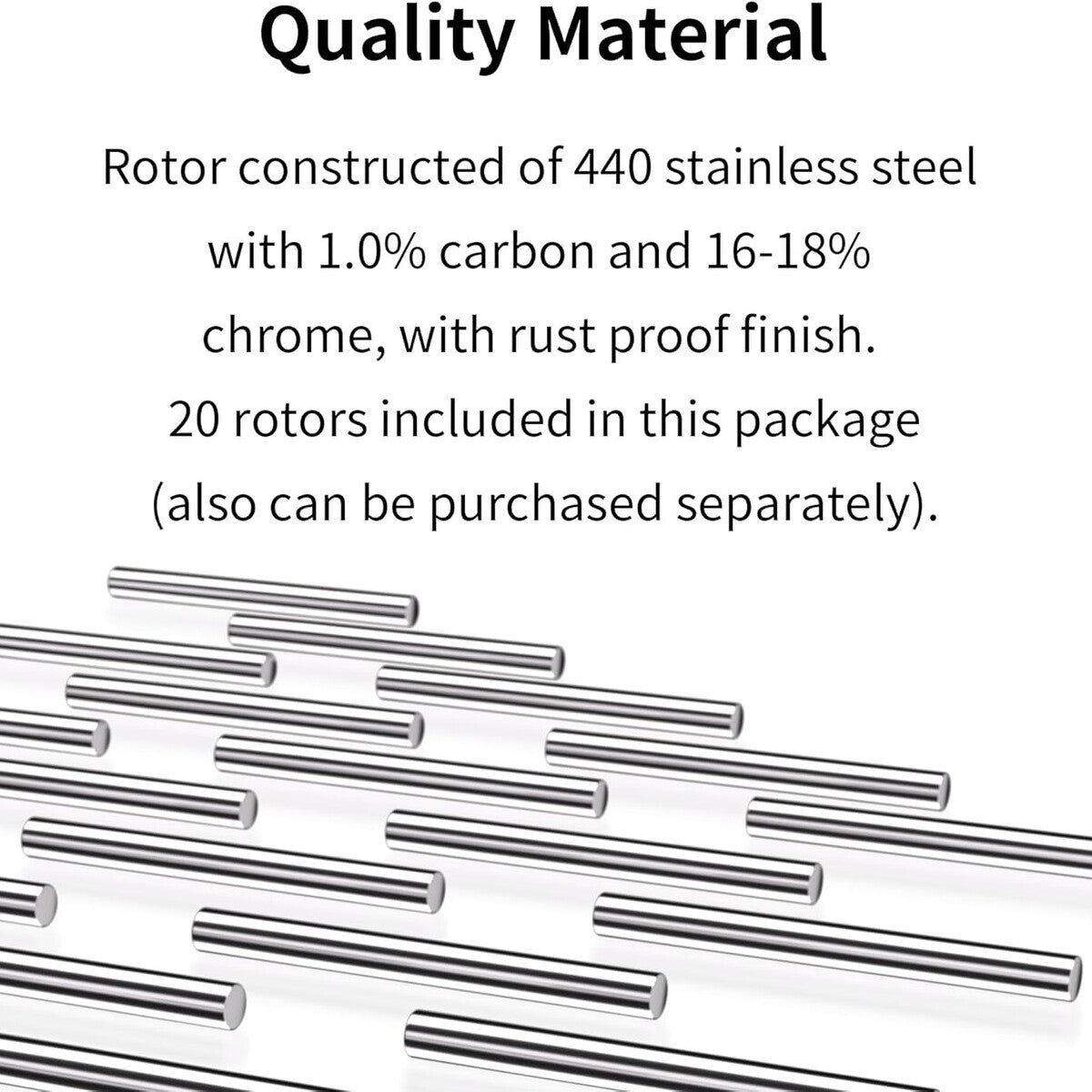 With a compact size of 97 × 96 × 28 mm and a lightweight build of 83 ± 5 g, the device is easy to carry and use in any workspace. The included Φ2 × 18 mm mixing rotors are ideal for small paint bottles and precision applications.