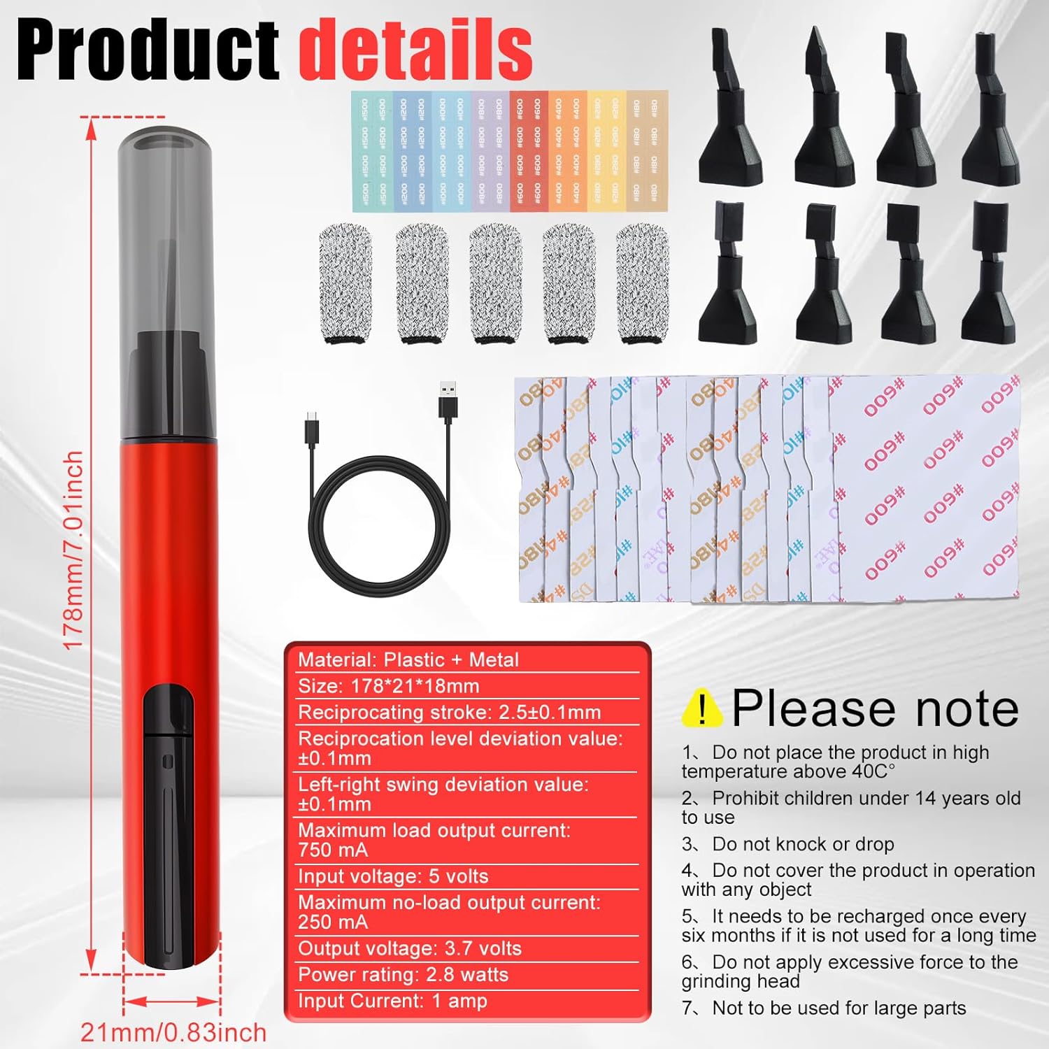 8 Attachments: The mini electric sander has 8 attachments of different shapes.
